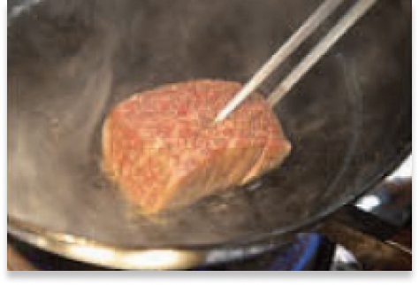 ※肉芯が冷たいまま肉の表面を焼くと、肉内部の急激な温度変化により、肉汁が流失してしまう