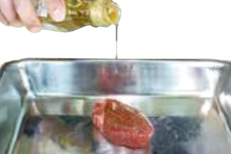 ※油をかけることにより、焼いている時のお肉の乾燥を防ぐ