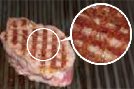 ※肉芯が冷たいまま焼くと温度変化により肉汁が流失してしまう。