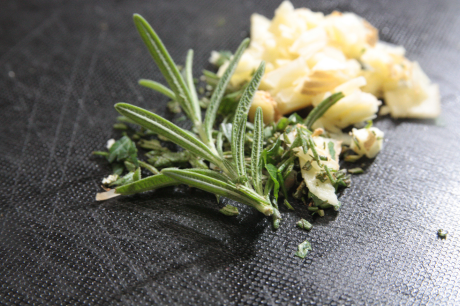 ローズマリーは葉の部分だけを外して、みじん切りにします。